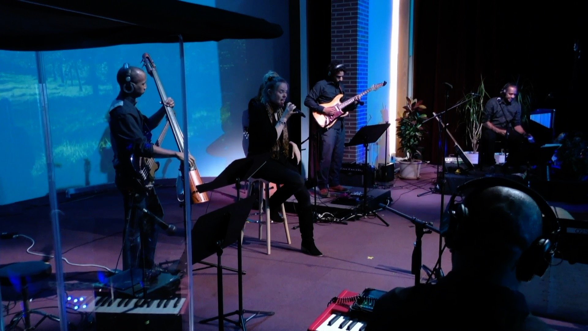 🎶 Erica DumWae & Band en concert, c’est : un pianiste, deux guitaristes, un bassiste, un batteur, une flutiste et deux choristes.